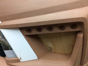 クレイ造形が完了後、石膏にて型を取ります。 その後、FRPを積層するのですが、表面が石